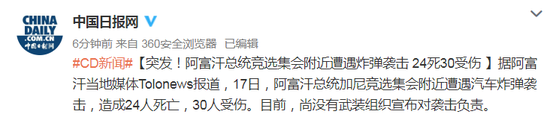 阿富汗总统竞选集会附近遭遇炸弹袭击