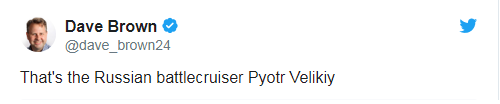 然而没过多久,就有人发现了马斯特推特配图的问题。美国“政客”网站的编辑戴维·布朗发文称,马斯特配的可是“俄罗斯的‘彼得大帝’号战列巡洋舰”。↓