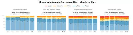 亚裔特别是华人家庭注重教育,获得Offer的比例也最高。在今年放榜的特殊高中入学考试中,被录取的亚裔学生高达51.1%,占了一半还多。