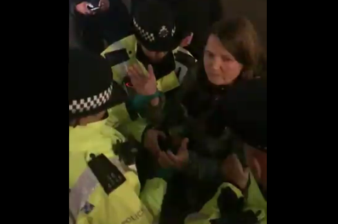 14日晚,警方在特拉法加广场拘捕不合作的示威者 推特视频截图